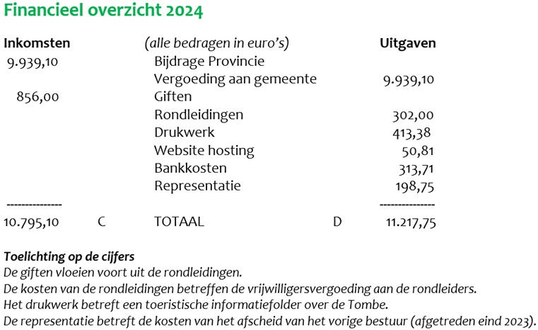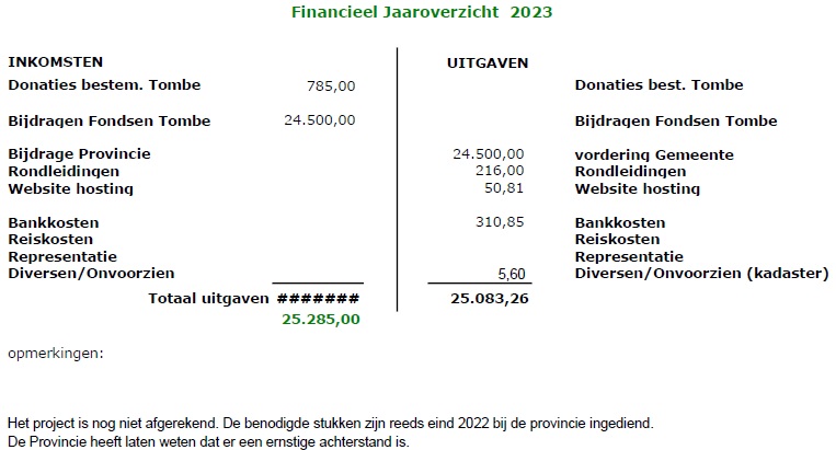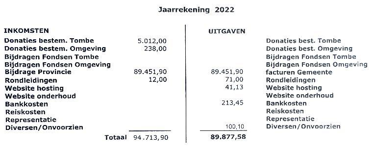 Na het herstel zijn de reserves in verhouding met de verwachte kosten van onderhoud en instandhouding van de Tombe.